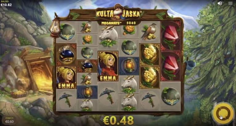 The visual appeal of Kulta Jaska Megaways Slots is immediately captivating, transporting players straight to a lush, vibrant wilderness filled with the promise of hidden treasures. The attention to detail is extraordinary, with beautifully designed symbols such as sparkling jewels, sturdy kettles, and gleaming gold nuggets enhancing the authentic mining atmosphere. The animations are fluid, bringing characters like Emma and various wildlife symbols, including deer and birds, vividly to life. Complementing these visuals, the soundtrack is a perfect match, featuring natural sounds and musical cues that heighten the sense of adventure and anticipation.